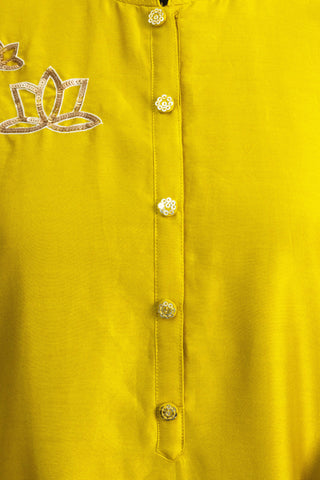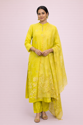 Chanderi Tissue | Chanderi tissue kurta set and jhari kota dupatta for women | Canary Yellow
